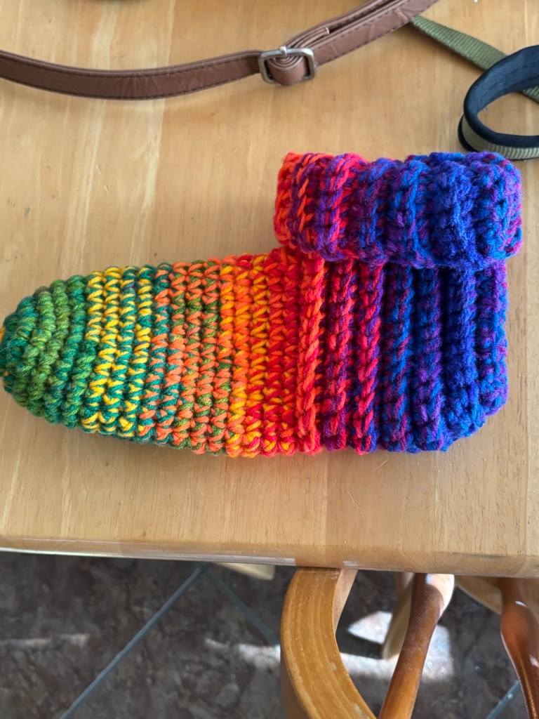 Hello to you. It’s a sunny Sunday here in Idaho. I hope you are safe and warm where this finds you. I’m just back from church and a short walk with Link. My back isn’t being friendly today. Church was nice. I was joined by Jeannie AND Roy! He had a present for me – rainbow colored slippers he crocheted. The ones he made me for Christmas didn’t fit so these are replacements. These fit nicely and are so pretty! It was so good to see Roy and Jeannie. Today was baptism Sunday. There were 6 young ladies who were baptized – got me teary! It’s beautiful to see young people profess their faith.