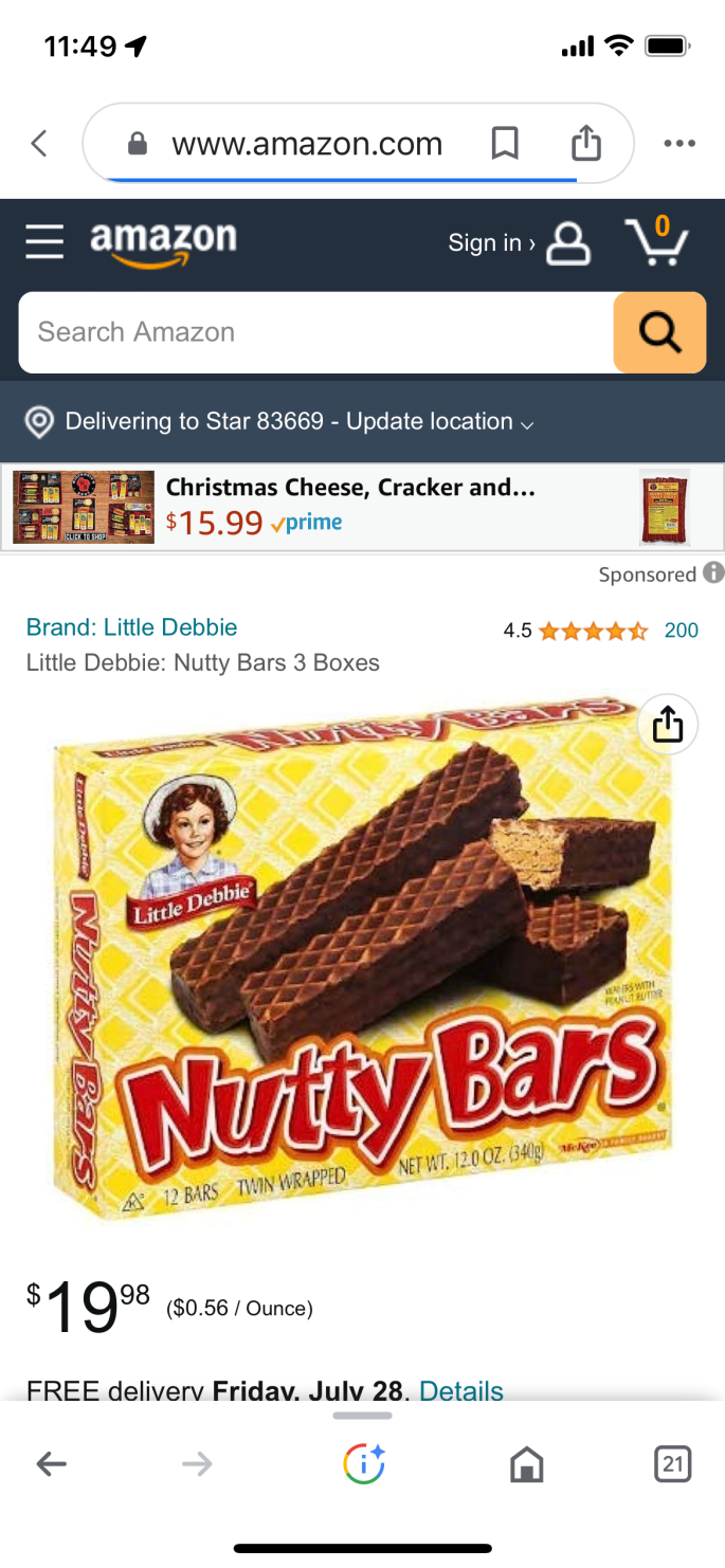 My comfort food is peanut butter and chocolate. I enjoy Reese’s Peanut Butter Cups and Little Debbie’s Nutty Bars. Neither of these are low calorie so they have to be eaten in moderation! When I was a teenager I was hungry all the time and would eat semi-sweet chocolate chips in peanut butter as a snack.